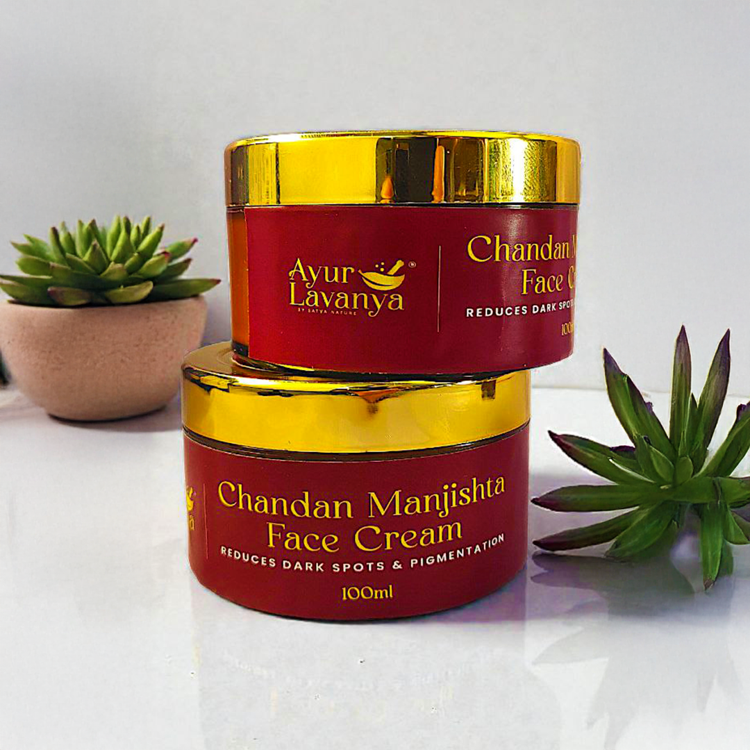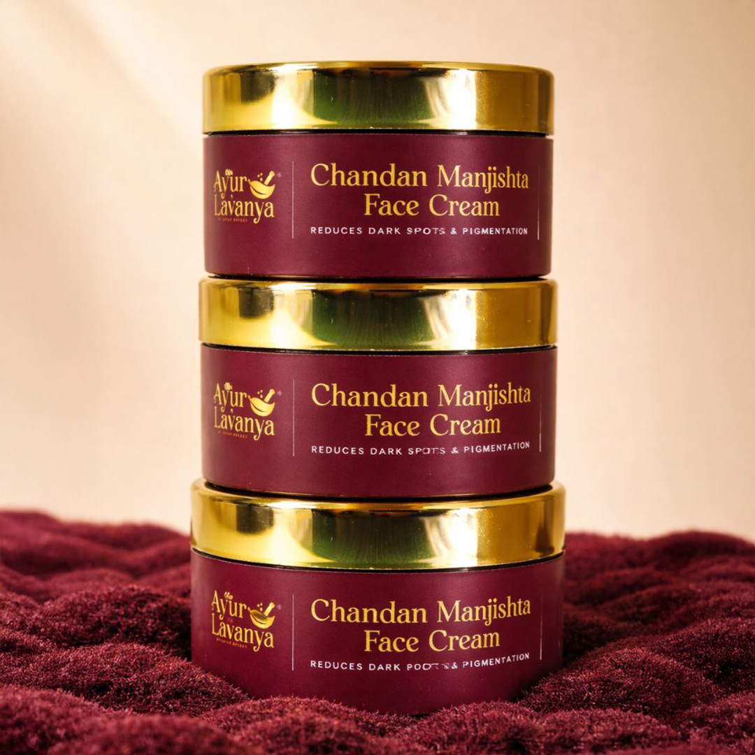 Meet your everyday glow essential: Chandan Manjistha Face Cream a fast-absorbing, herbal moisturizer crafted to support clear-looking, balanced, and radiant skin. This cream blends the soothing feel of Chandan (Sandalwood) with the traditional skin-purifying benefits of Manjistha, known in Ayurveda for helping improve the appearance of uneven tone, dullness, and blemish marks over time.
